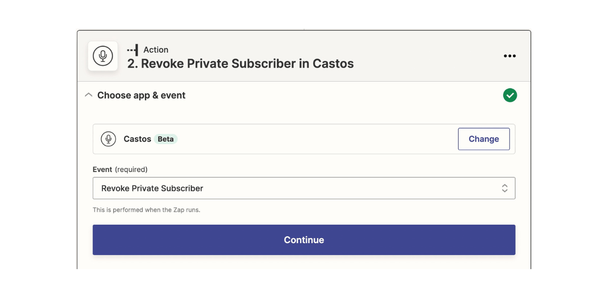 - Search for Castos and select it as the "Action."